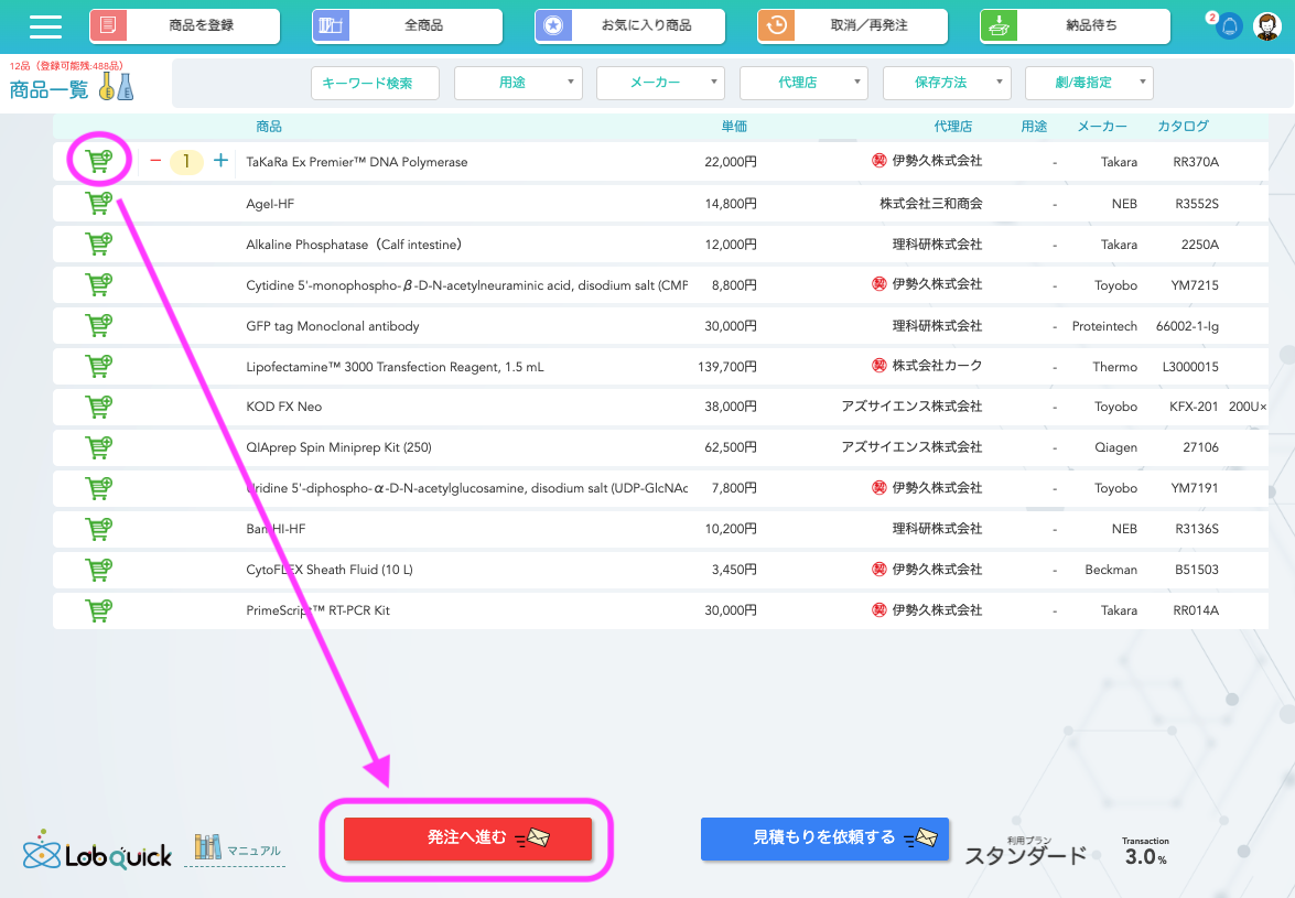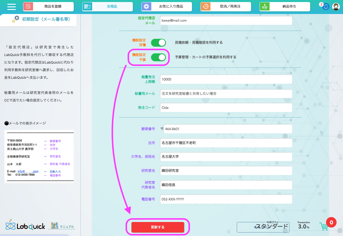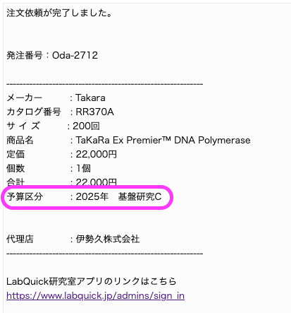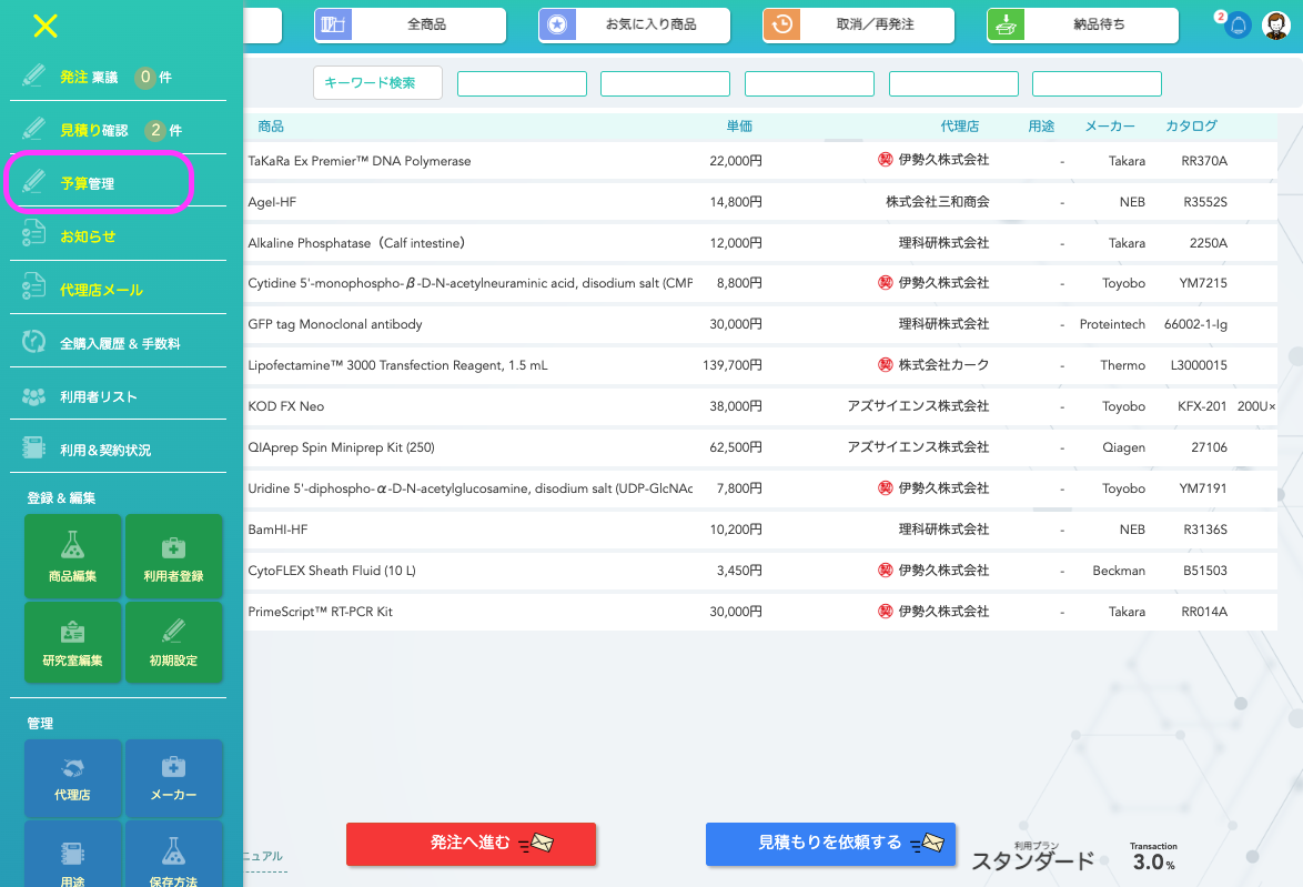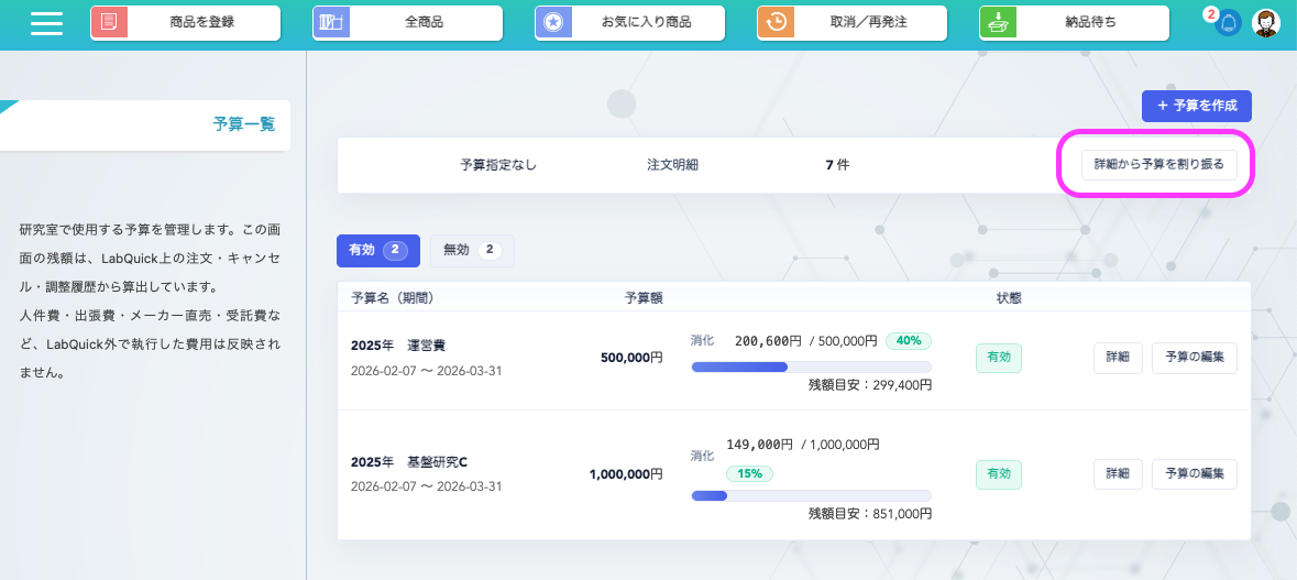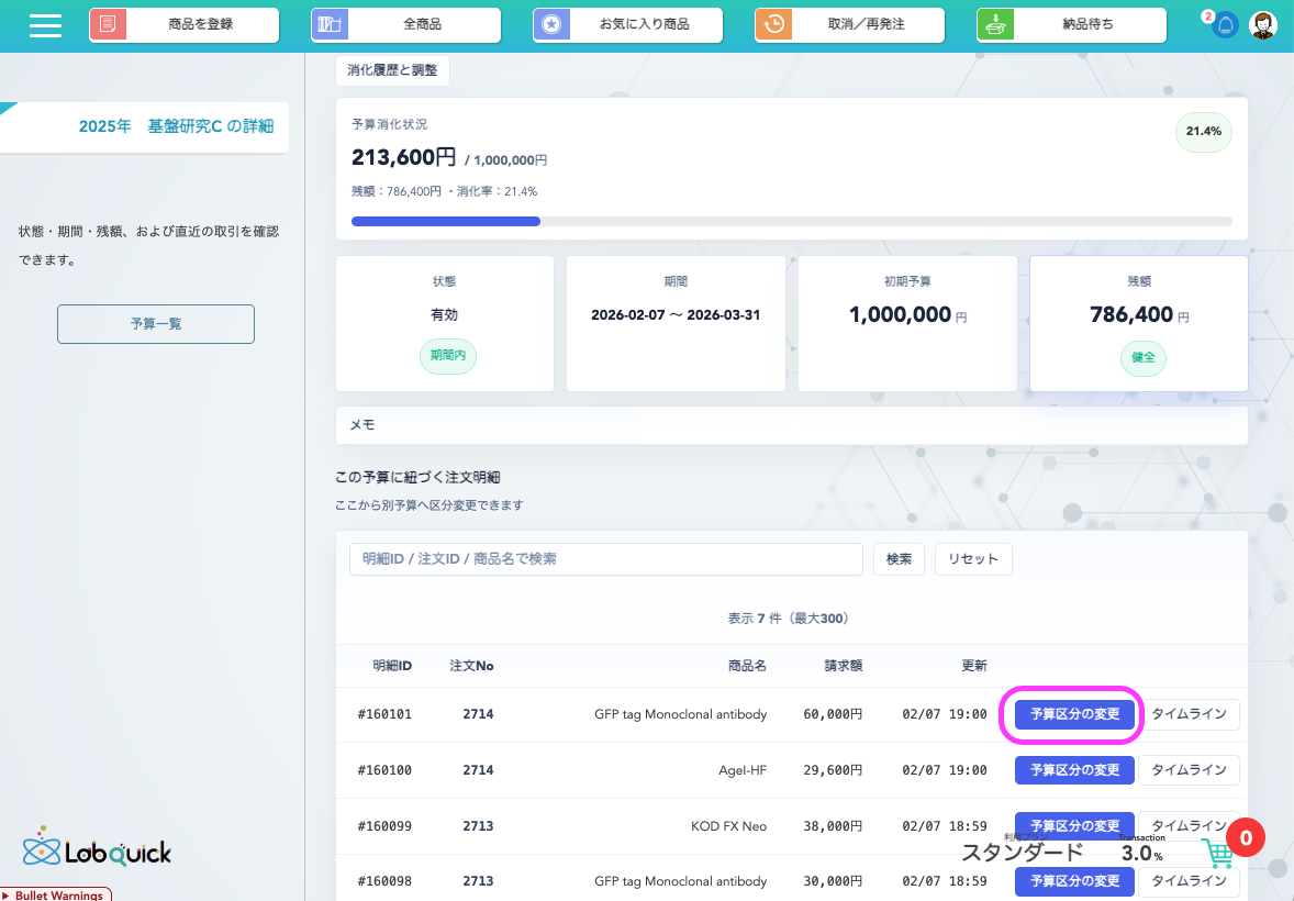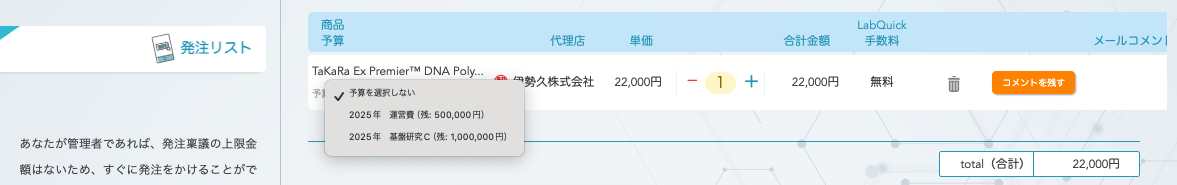 LabQuickを使用して、簡単に研究予算の管理を行い、注文時に予算項目を指定することが可能です。