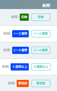 「即納」「1〜2週間」「2〜4週間」「4週間以上」「要相談」が選択できます。